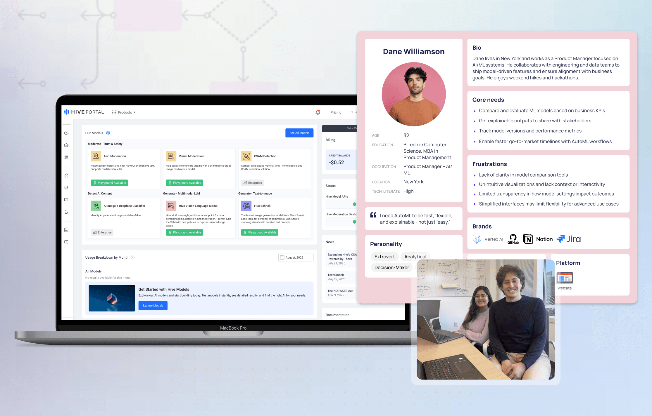 Heuristic Evaluation: Audited the existing Hive dashboard and sign-up process, finding key issues with hierarchy, guidance, and information overload.